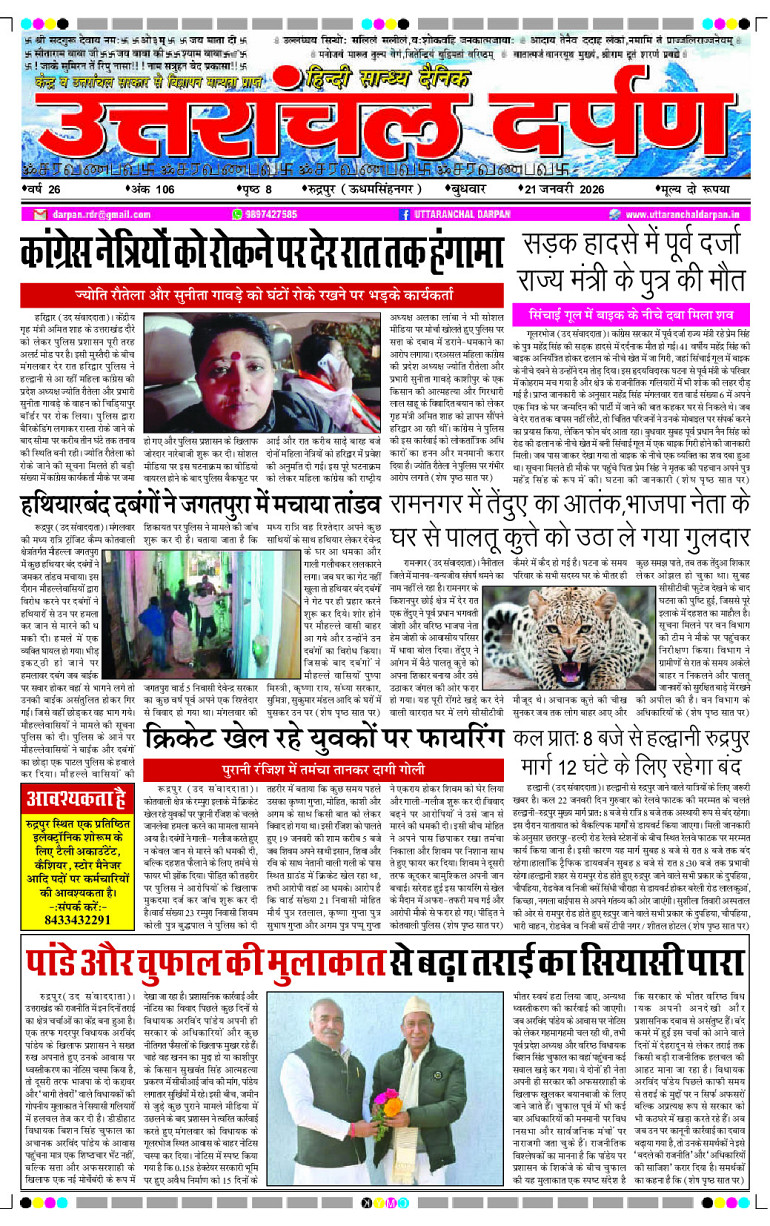uttaranchal darpan January 21, 2026 Home Select Editon रुद्रपुर एडिशन देहरादून एडिशन Page 1Page 2Page 3Page 4Page 5Page 6Page 7Page 8 × uttaranchal darpan Full PDF << First << 1 >> Last >> View All Thumbnail