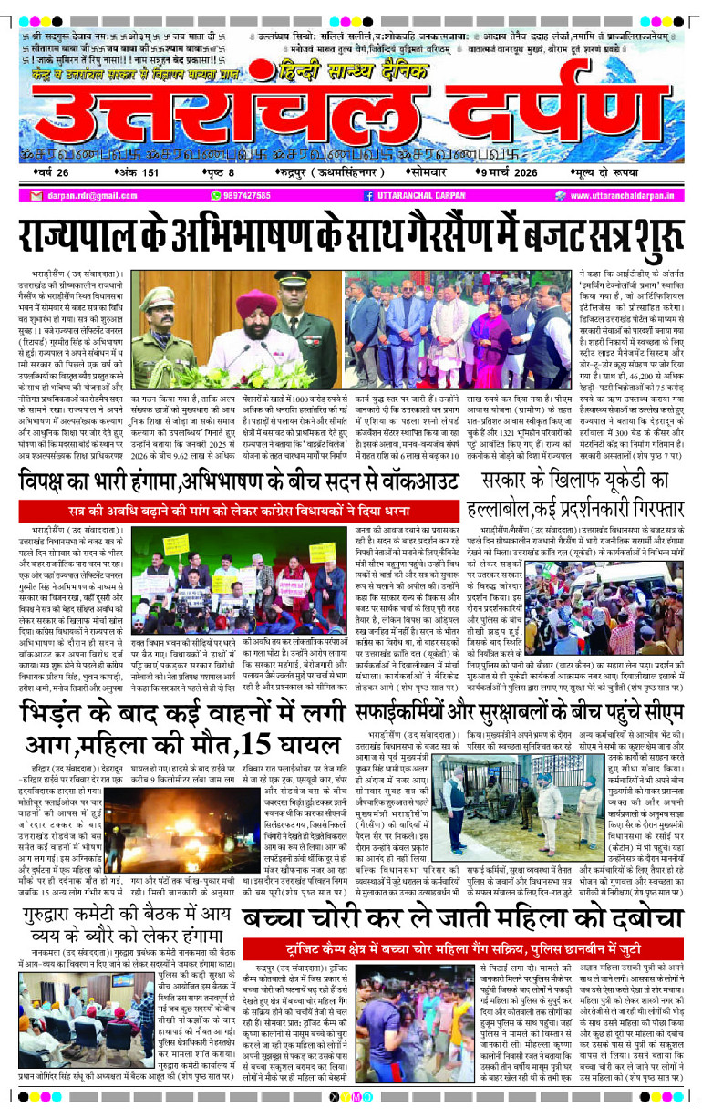 uttaranchal darpan March 09, 2026 Home Select Editon रुद्रपुर एडिशन देहरादून एडिशन Page 1Page 2Page 3Page 4Page 5Page 6Page 7Page 8 × uttaranchal darpan Full PDF << First << 1 >> Last >> View All Thumbnail
