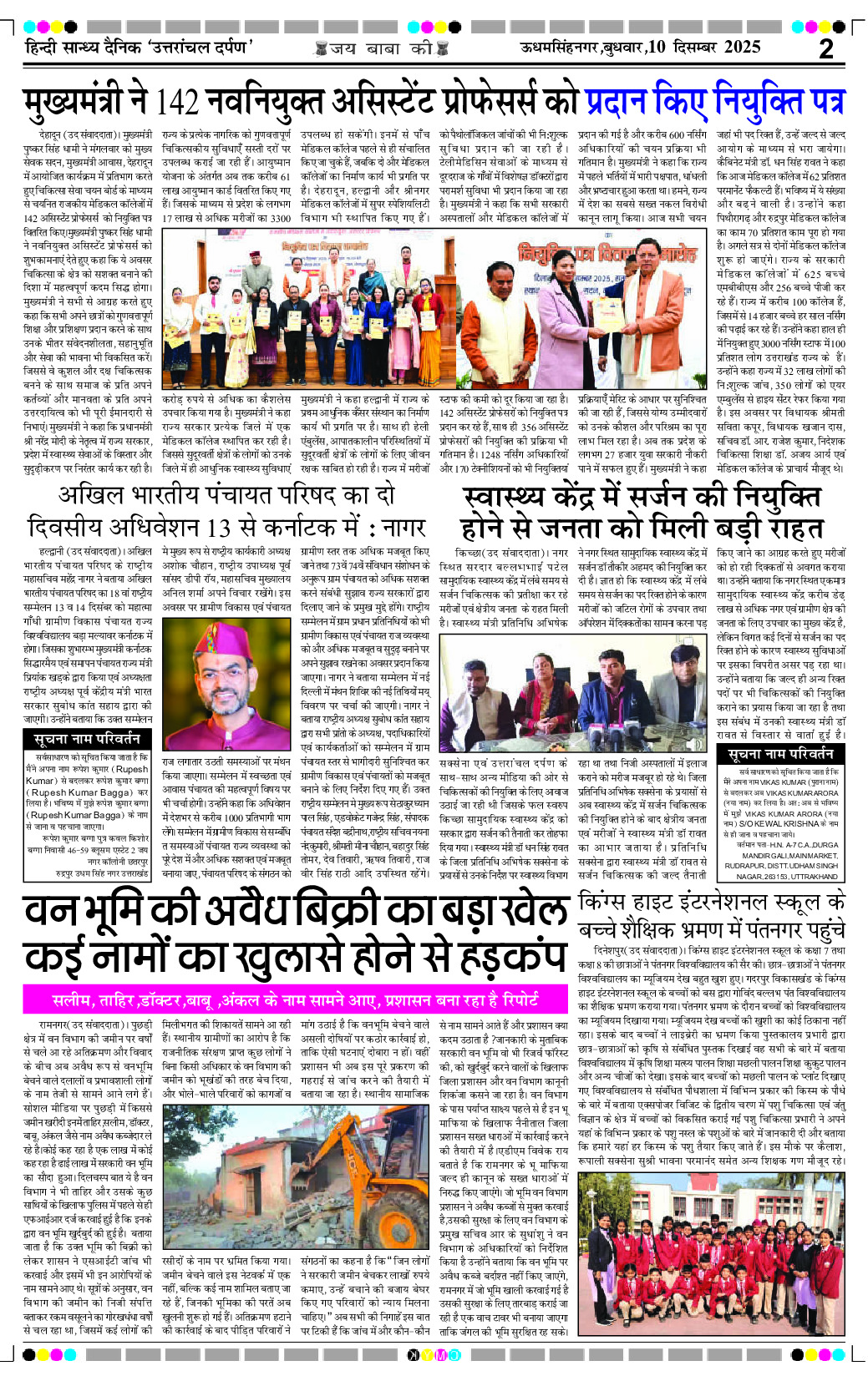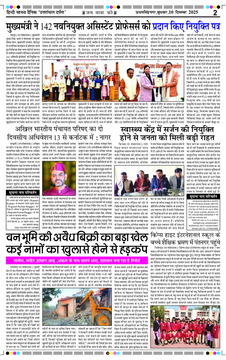 uttaranchal darpan Page: 2 December 10, 2025 Home Select Editon रुद्रपुर एडिशन देहरादून एडिशन Page 1Page 2Page 3Page 4Page 5Page 6Page 7Page 8 × uttaranchal darpan Full PDF << First << 2 >> Last >> View All Thumbnail