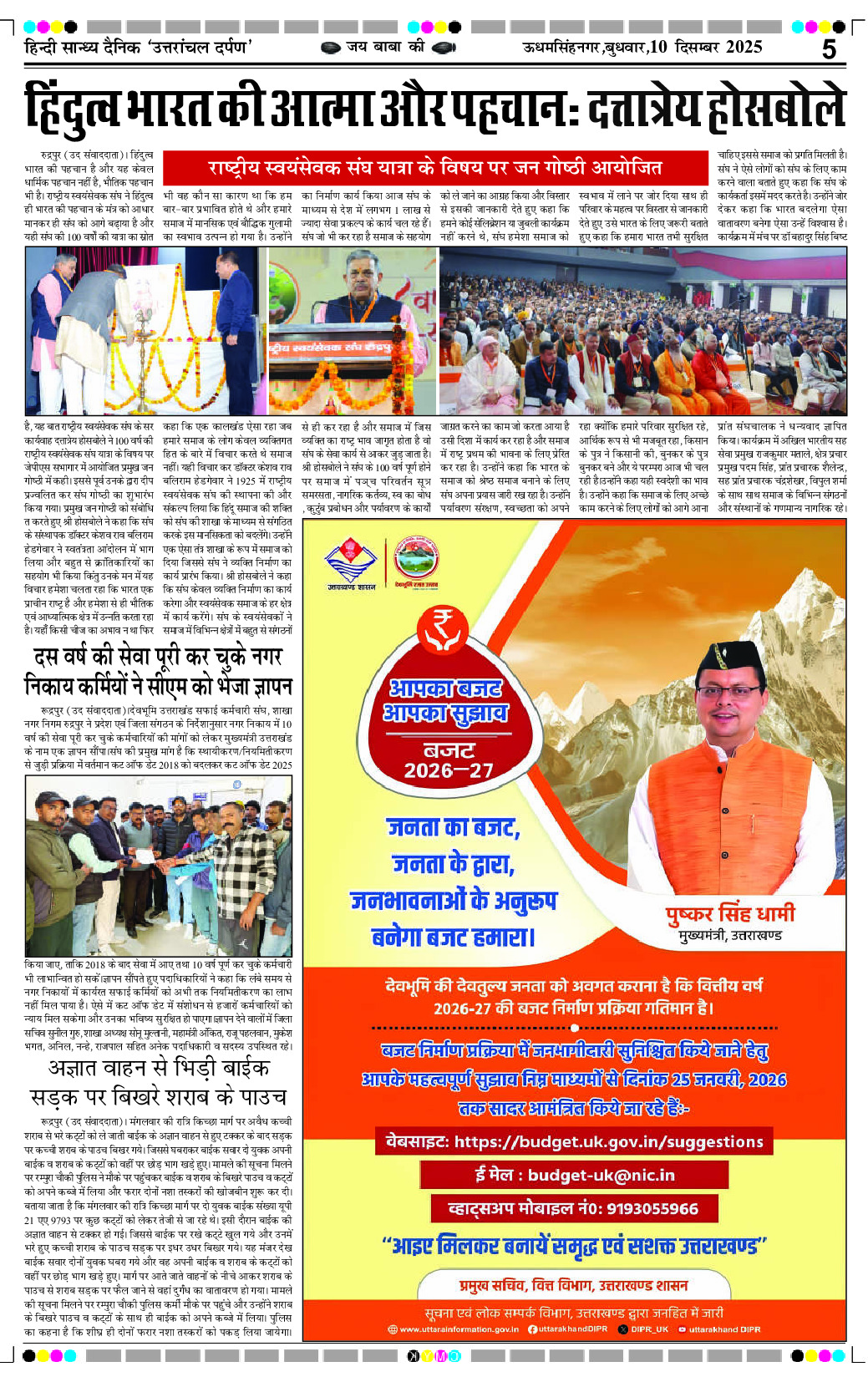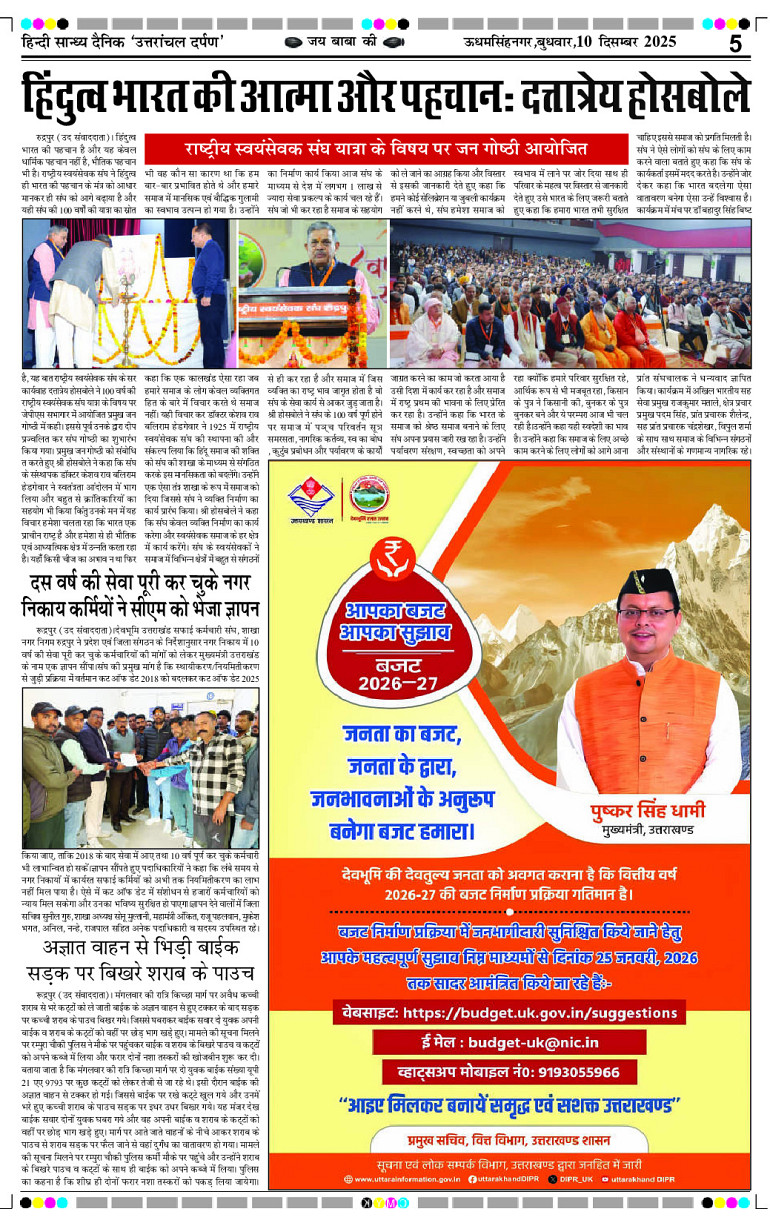 uttaranchal darpan Page: 5 December 10, 2025 Home Select Editon रुद्रपुर एडिशन देहरादून एडिशन Page 1Page 2Page 3Page 4Page 5Page 6Page 7Page 8 × uttaranchal darpan Full PDF << First << 5 >> Last >> View All Thumbnail