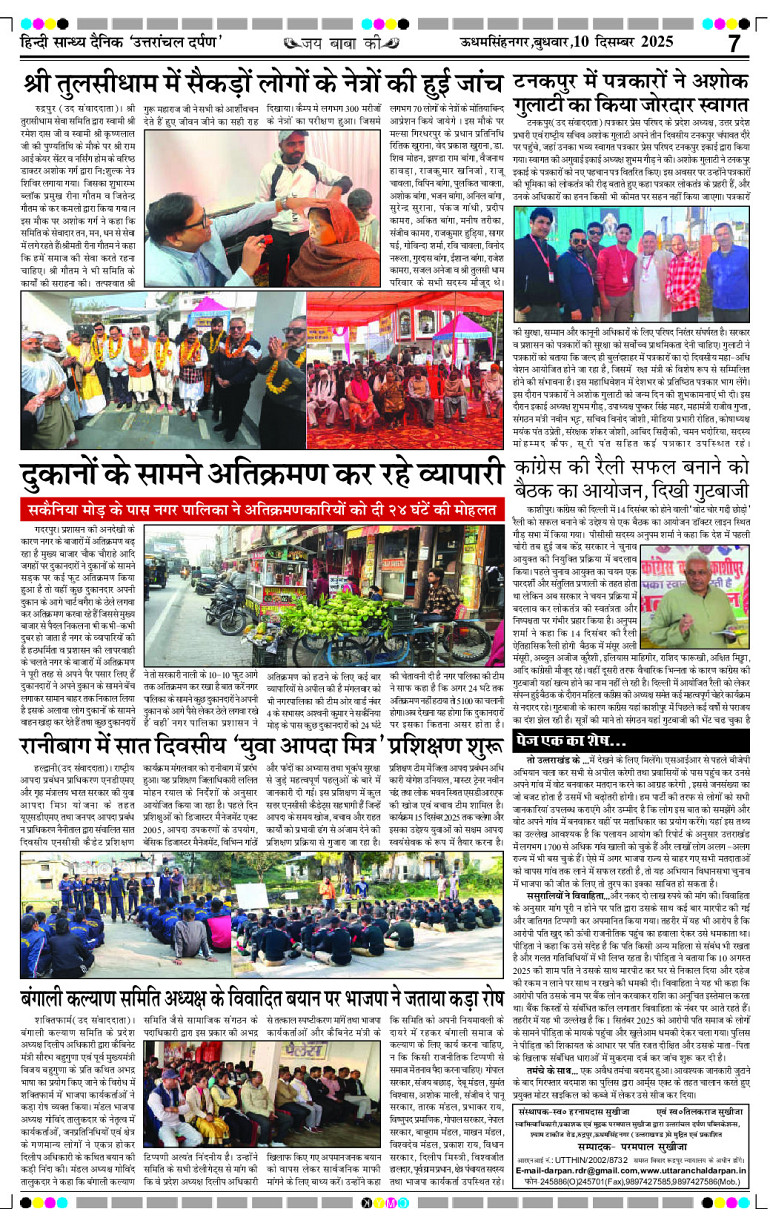 uttaranchal darpan Page: 7 December 10, 2025 Home Select Editon रुद्रपुर एडिशन देहरादून एडिशन Page 1Page 2Page 3Page 4Page 5Page 6Page 7Page 8 × uttaranchal darpan Full PDF << First << 7 >> Last >> View All Thumbnail