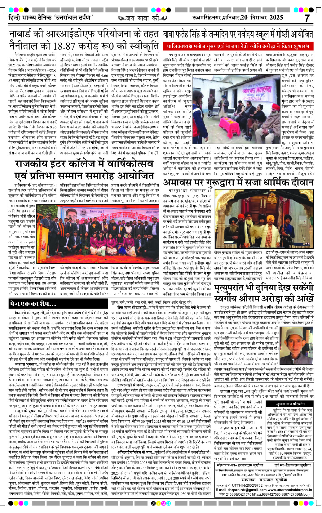 uttaranchal darpan Page: 7 December 20, 2025 Home Select Editon रुद्रपुर एडिशन देहरादून एडिशन Page 1Page 2Page 3Page 4Page 5Page 6Page 7Page 8 × uttaranchal darpan Full PDF << First << 7 >> Last >> View All Thumbnail