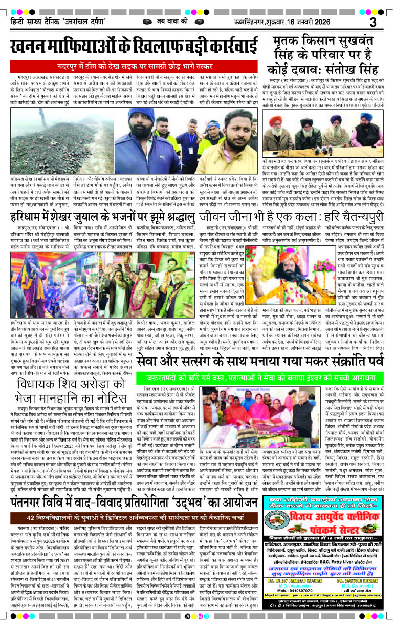 Uttaranchal Darpan Page: 3 January 16, 2026 Home Select Editon रुद्रपुर एडिशन देहरादून एडिशन Page 1Page 2Page 3Page 4Page 5Page 6Page 7Page 8 × Uttaranchal Darpan Full PDF << First << 3 >> Last >> View All Thumbnail