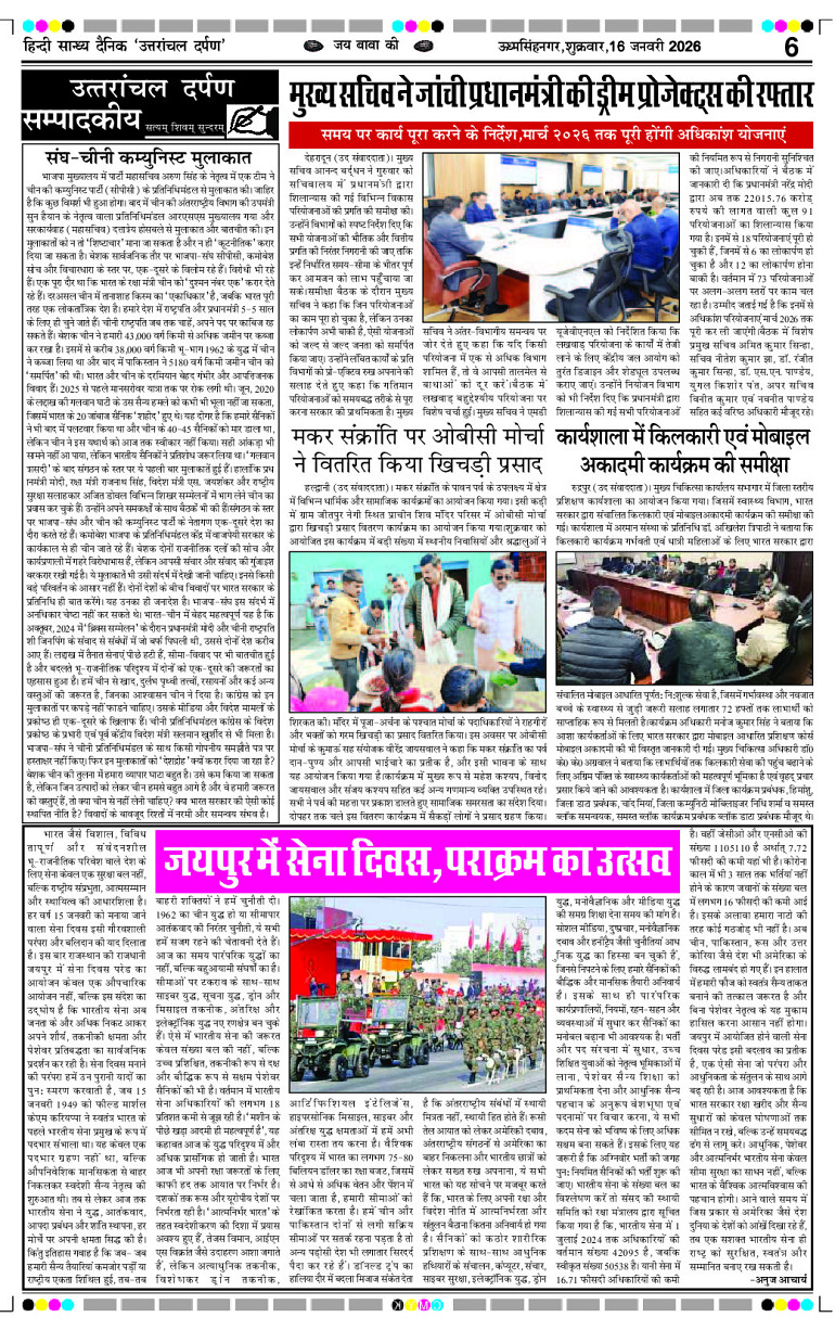 Uttaranchal Darpan Page: 6 January 16, 2026 Home Select Editon रुद्रपुर एडिशन देहरादून एडिशन Page 1Page 2Page 3Page 4Page 5Page 6Page 7Page 8 × Uttaranchal Darpan Full PDF << First << 6 >> Last >> View All Thumbnail