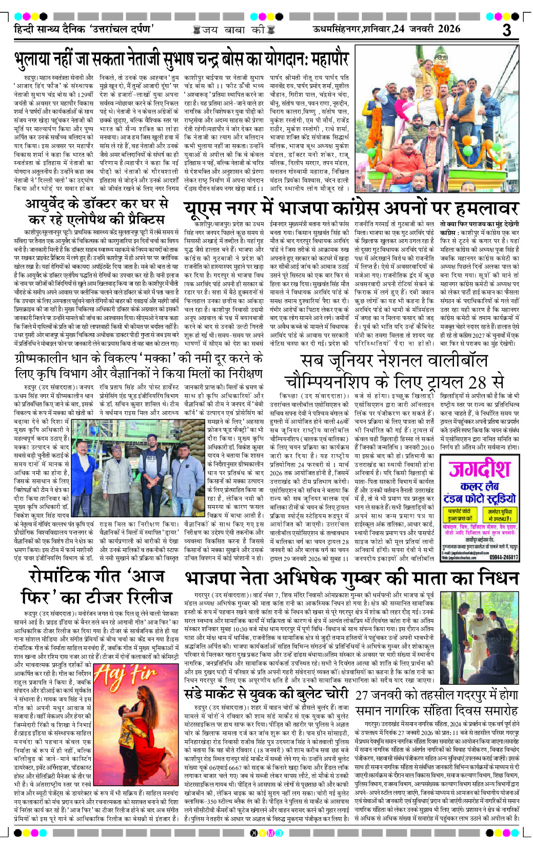 uttaranchal darpan Page: 5 January 24, 2026 Home Select Editon रुद्रपुर एडिशन देहरादून एडिशन Page 1Page 2Page 3Page 4Page 5Page 6Page 7Page 8Page 9Page 10Page 11Page 12Page 13Page 14Page 15Page 16 × uttaranchal darpan Full PDF << First << 5 >> Last >> View All Thumbnail