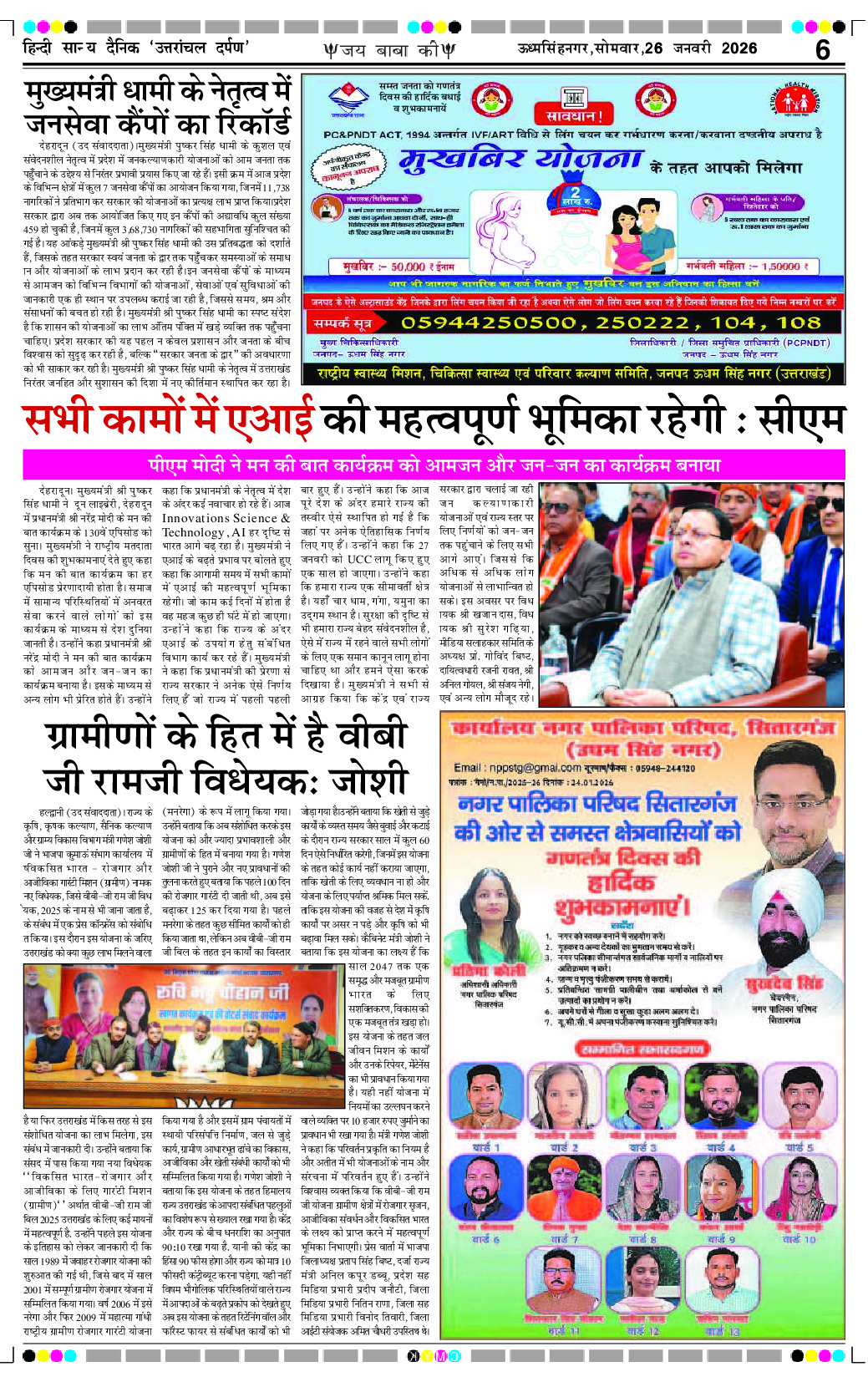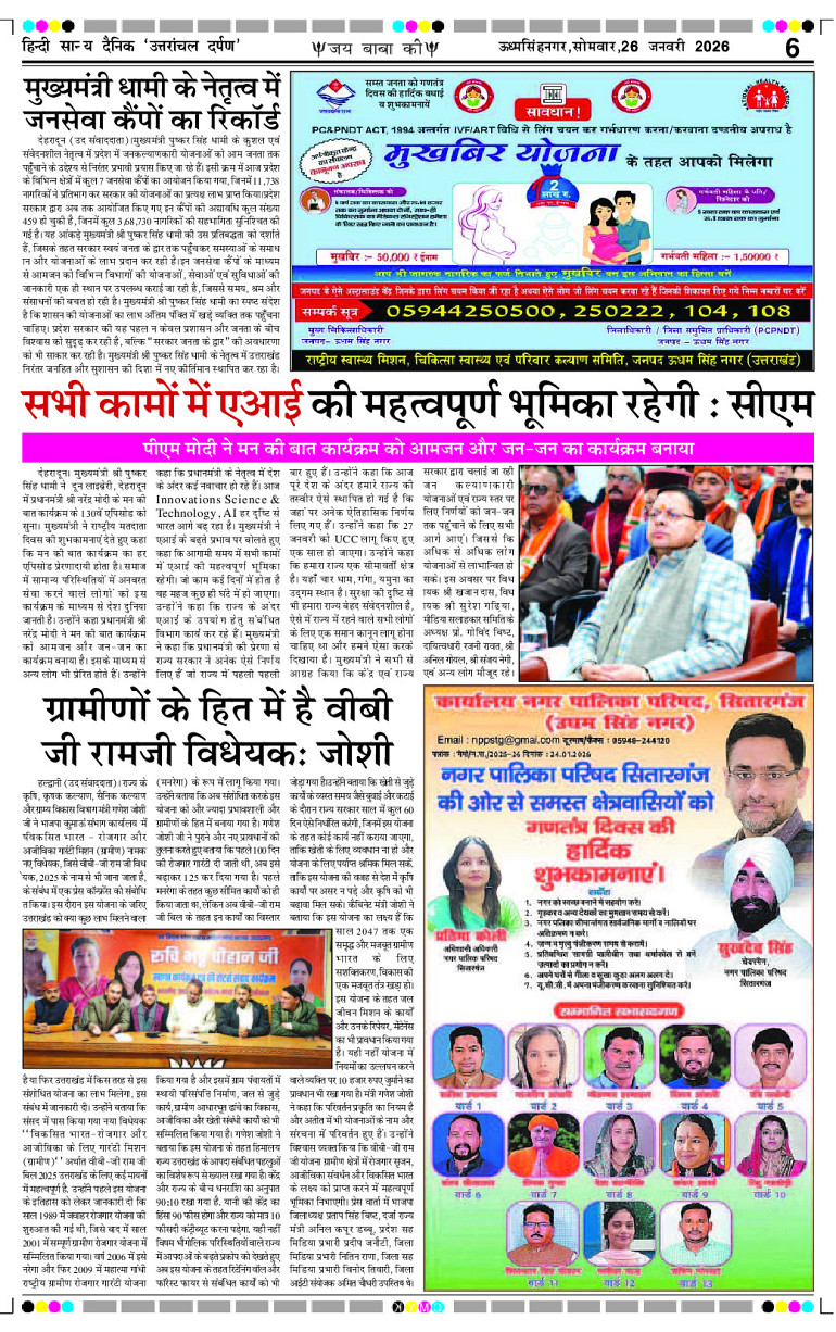uttaranchal darpan Page: 6 January 26, 2026 Home Select Editon रुद्रपुर एडिशन देहरादून एडिशन Page 1Page 2Page 3Page 4Page 5Page 6Page 7Page 8Page 9Page 10Page 11Page 12Page 13Page 14Page 15Page 16 × uttaranchal darpan Full PDF << First << 6 >> Last >> View All Thumbnail