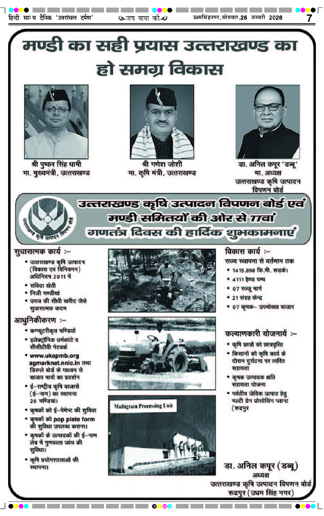 uttaranchal darpan Page: 7 January 26, 2026 Home Select Editon रुद्रपुर एडिशन देहरादून एडिशन Page 1Page 2Page 3Page 4Page 5Page 6Page 7Page 8Page 9Page 10Page 11Page 12Page 13Page 14Page 15Page 16 × uttaranchal darpan Full PDF << First << 7 >> Last >> View All Thumbnail