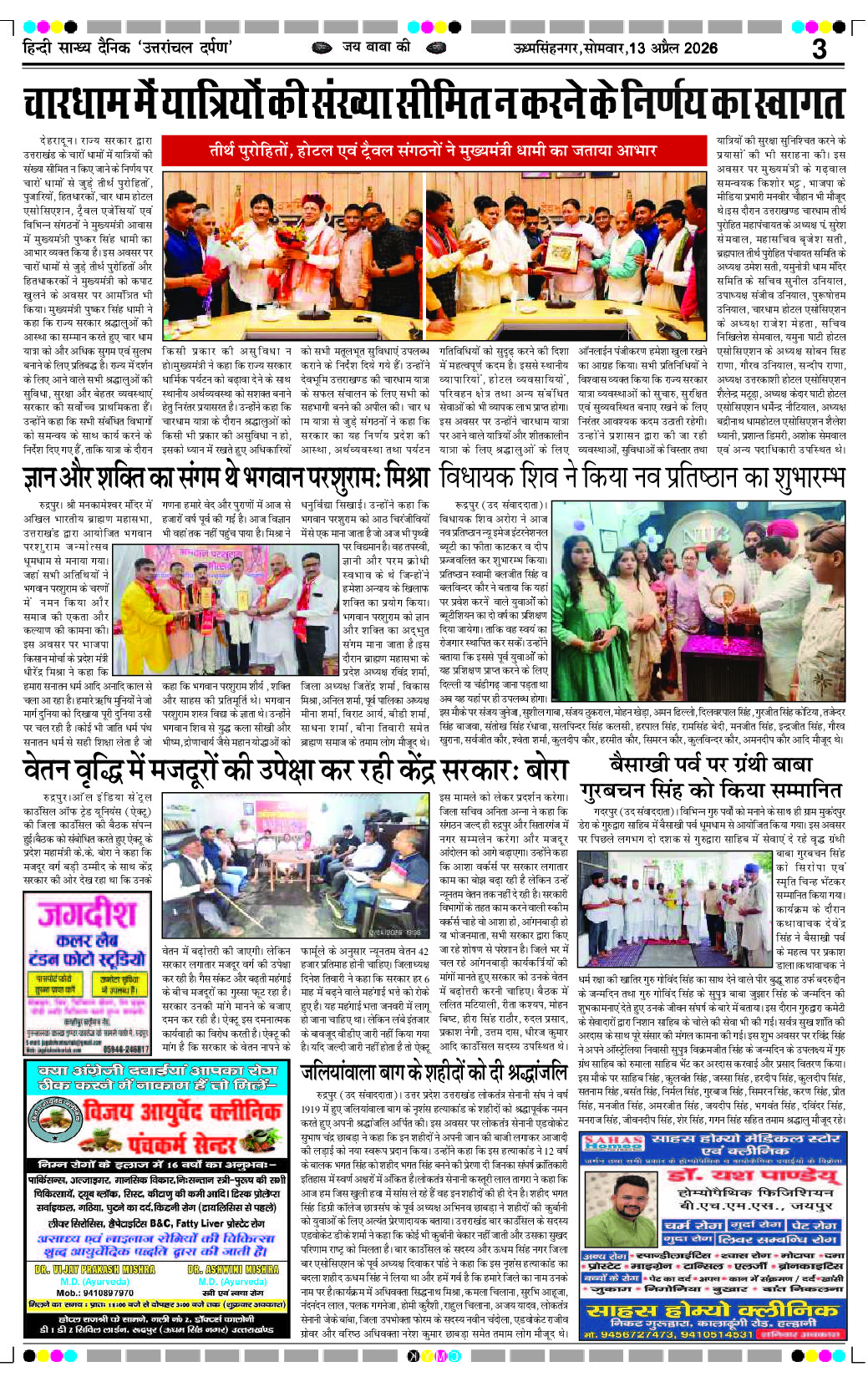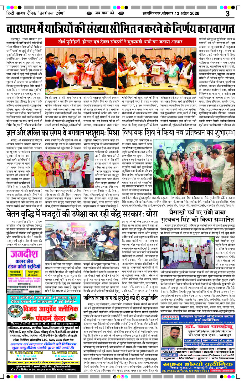 Uttaranchal Darpan Page: 3 April 13, 2026 Home Select Editon रुद्रपुर एडिशन देहरादून एडिशन Page 1Page 2Page 3Page 4Page 5Page 6Page 7Page 8 × Uttaranchal Darpan Full PDF << First << 3 >> Last >> View All Thumbnail