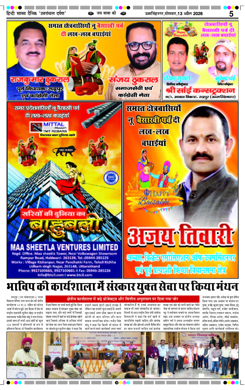 Uttaranchal Darpan Page: 5 April 13, 2026 Home Select Editon रुद्रपुर एडिशन देहरादून एडिशन Page 1Page 2Page 3Page 4Page 5Page 6Page 7Page 8 × Uttaranchal Darpan Full PDF << First << 5 >> Last >> View All Thumbnail